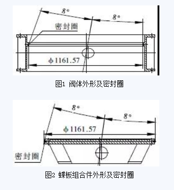 三偏心金屬硬密封蝶閥的密封面是斜錐面,閥體密封圈(圖1)與蝶板組合件密封圈(圖2)的接觸為面接觸,其工作原理是靠驅動裝置扭力直接帶動蝶板組合件,使蝶板組合件密封圈與閥體密封圈充分接觸后產生彈性變形而密封。三偏心金屬硬密封蝶閥作為一種高性能閥門,具有耐腐蝕性好、密封可靠、開啟力矩小等優點。三偏心硬密封電動蝶閥DN1200,其中閥體密封圈材料為1Cr18Ni9Ti,蝶板組合件密封圈材料為復合的不銹鋼板與石棉板夾層組合件,閥體密封圈與蝶板組合件密封圈的加工質量直接決定蝶閥密封性能。